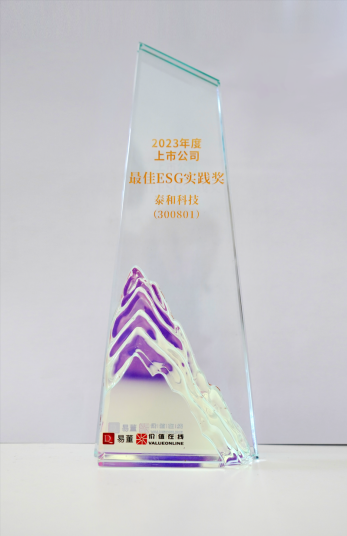 泰和科技(300801)榮獲由深圳價(jià)值在線信息科技股份有限公司、深圳市投資基金同業(yè)公會(huì)、鳳凰出版?zhèn)髅郊瘓F(tuán)董事會(huì)雜志社聯(lián)合頒發(fā)的“2023年度上市公司最佳ESG實(shí)踐獎(jiǎng)”,在綠色可持續(xù)發(fā)展道路上,我們將繼續(xù)踐行!